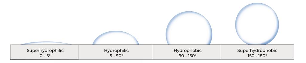 המדד האמיתי ליעילות של ציפוי הידרופובי הוא זווית המגע שלו – הזווית שנוצרת כאשר טיפת מים פוגשת את פני השטח של העדשה.